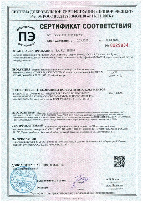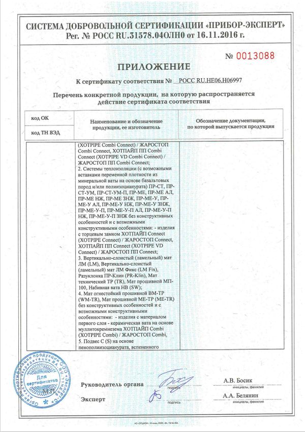 Используется для теплоизоляции охладительных установок острого пара свыше 350 °C. Для теплоизоляции клапанов и задвижек трубопроводов ТЭС, а так же для теплоизоляции печного оборудования.