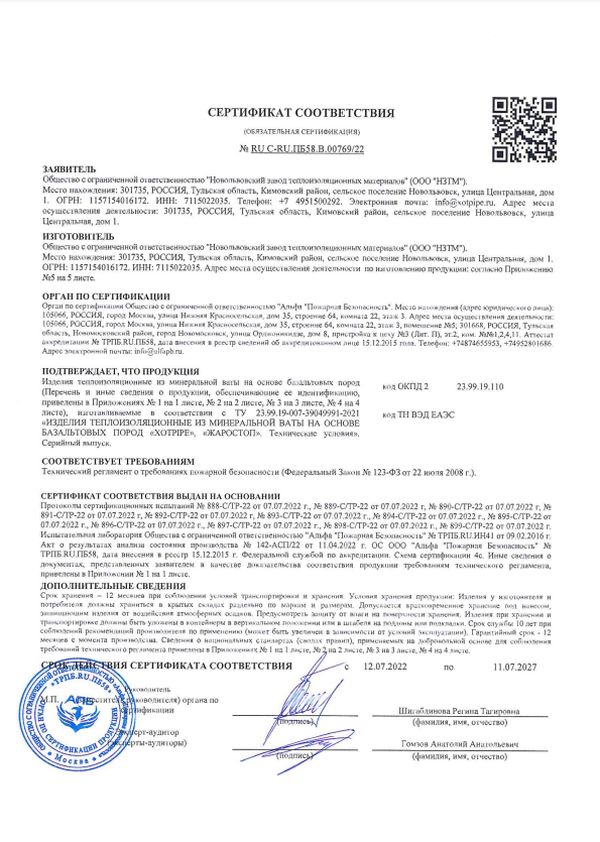 • Постоянная рабочая температура теплоносителя для матов комби выше, чем максимальная температура применения базальтовой изоляции.